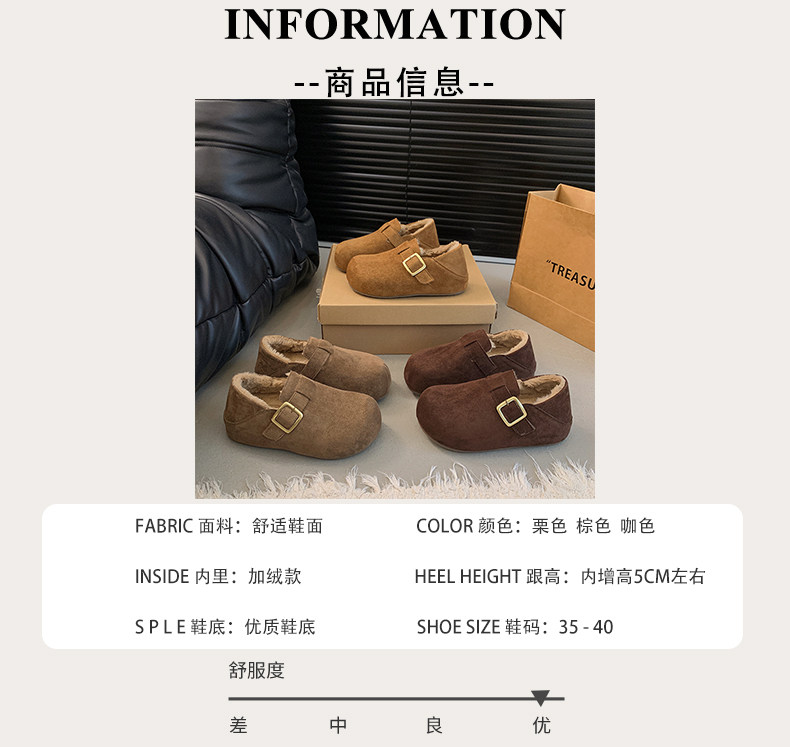 复古全包加绒勃肯鞋女2025秋冬新款内增高厚底一脚蹬两穿博肯棉鞋