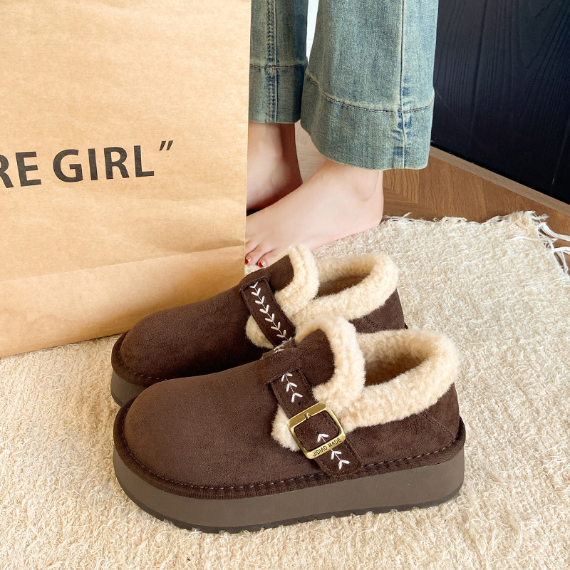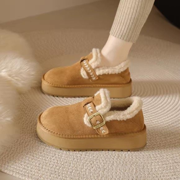 厚底加绒勃肯鞋女款2025新款冬季加绒加厚保暖全包博肯毛毛棉鞋子
