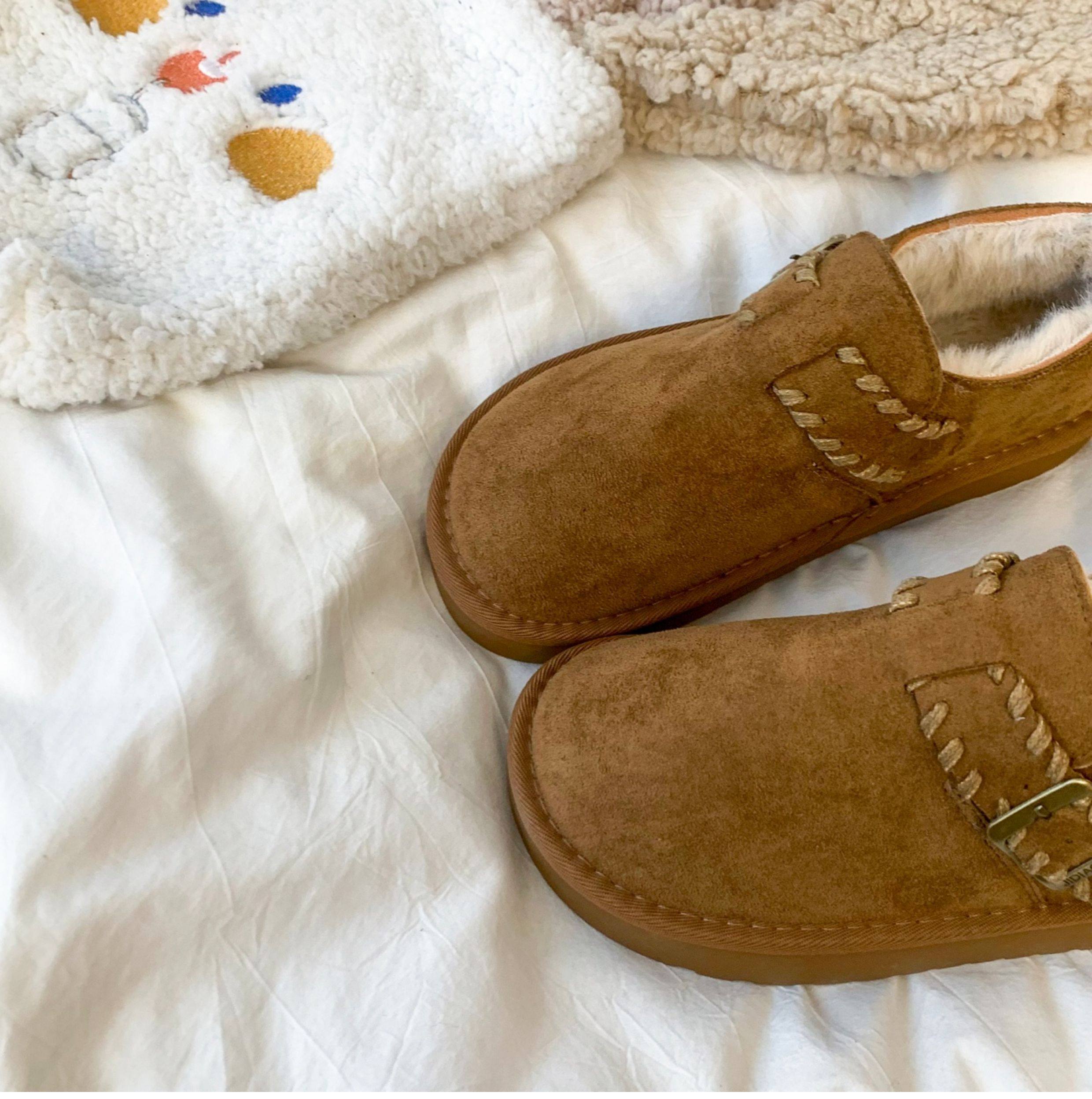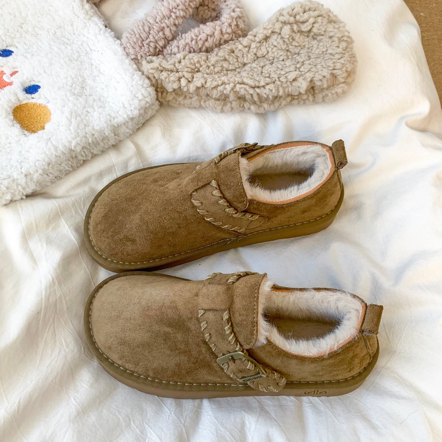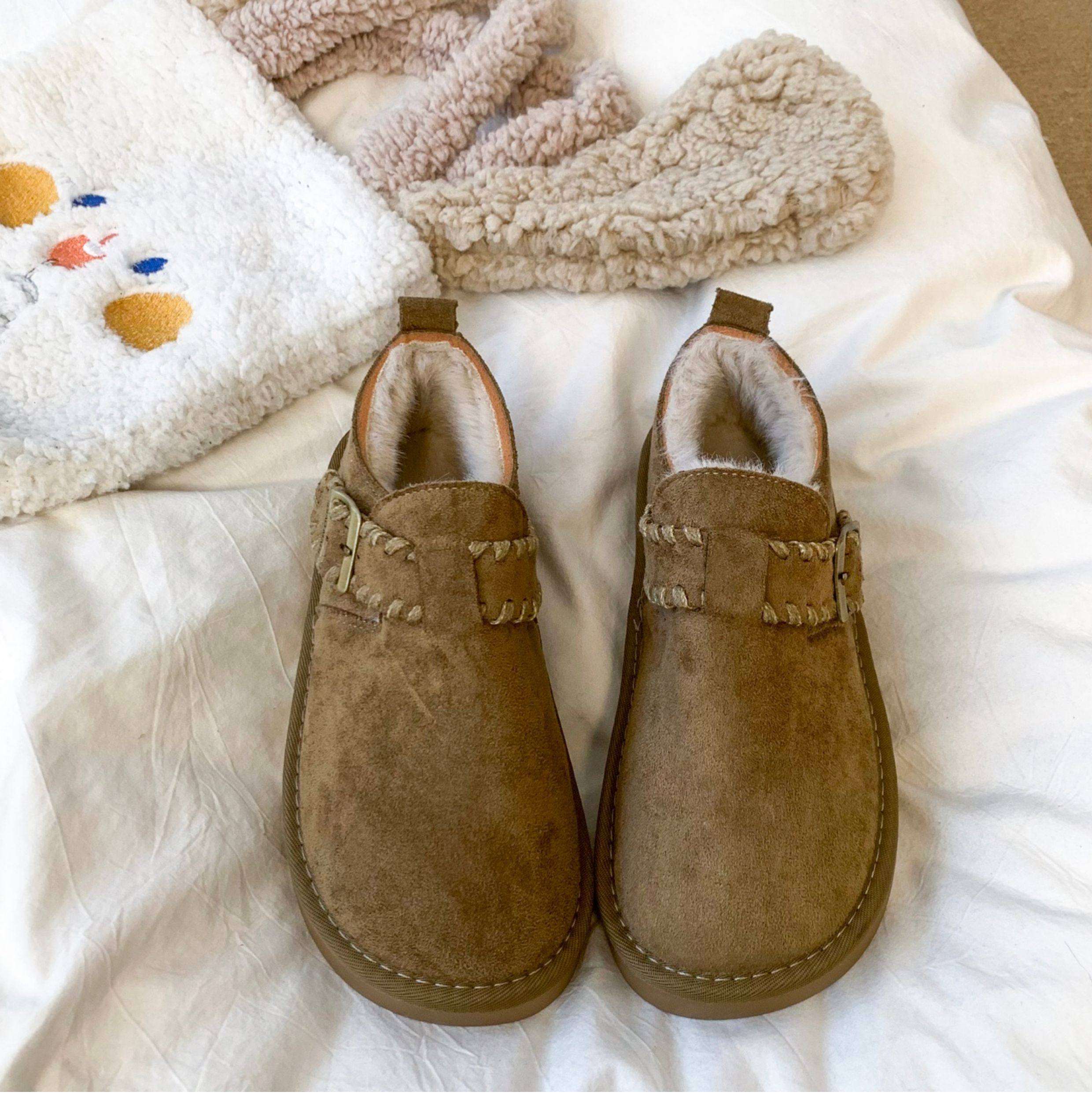 平底勃肯鞋女加绒保暖雪地靴女2025新款冬季乐福鞋豆豆鞋博肯棉鞋