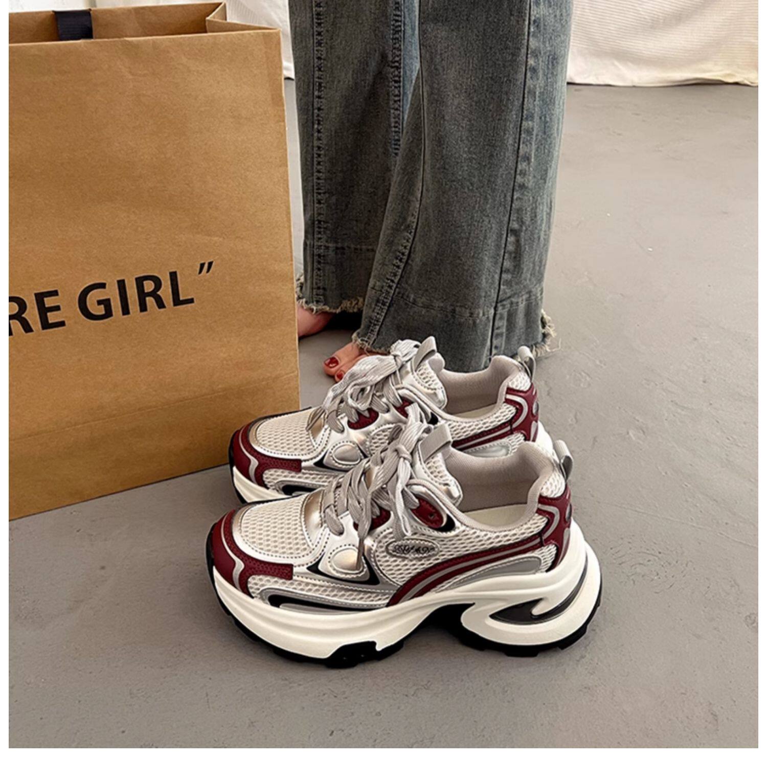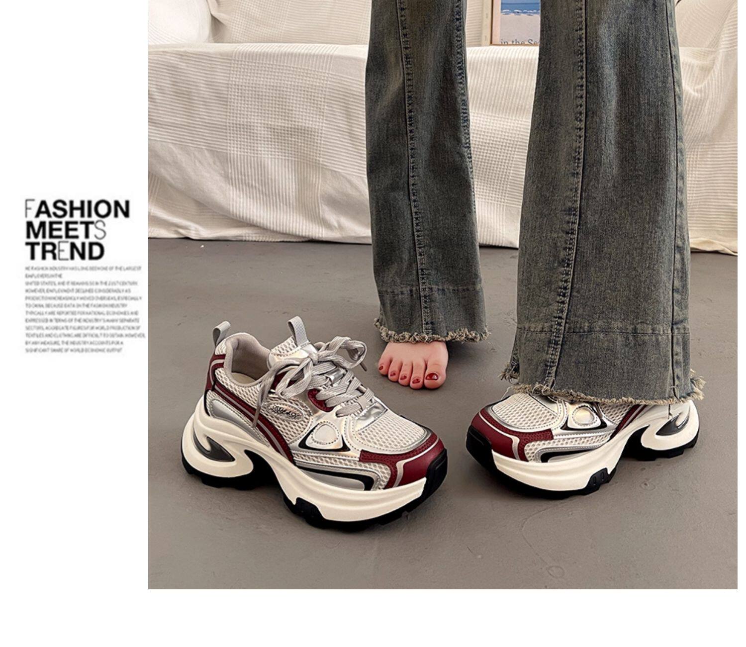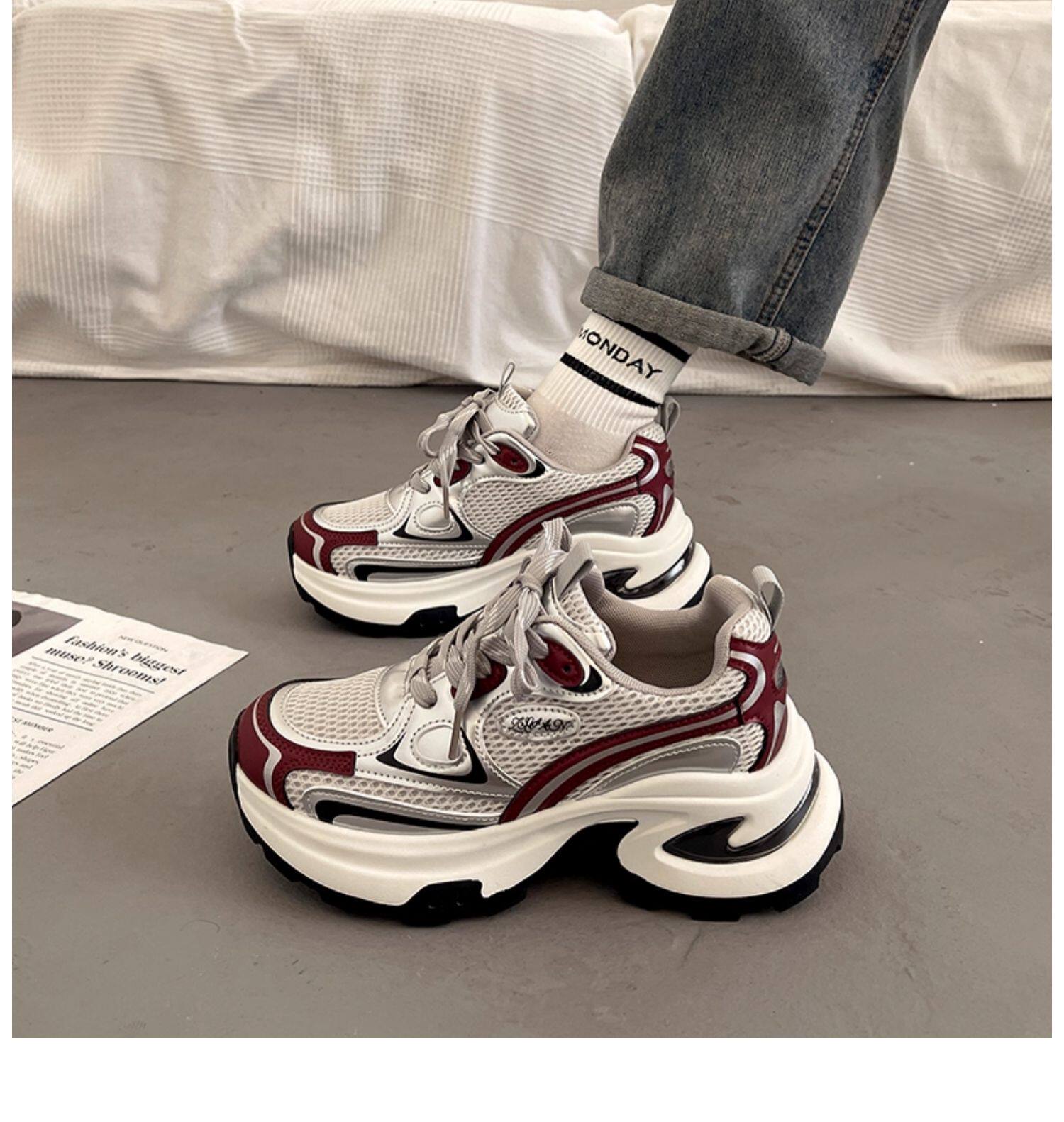 爆款百搭厚底老爹鞋女小个子增高2025超火新款秋冬银色运动休闲鞋