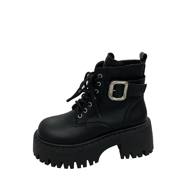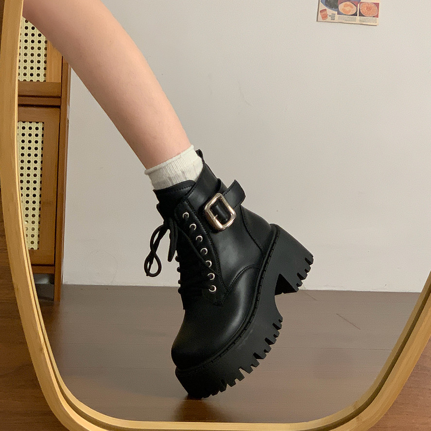 厚底英伦风马丁靴女款2025新款秋冬季小个子增高黑色系带短筒靴子